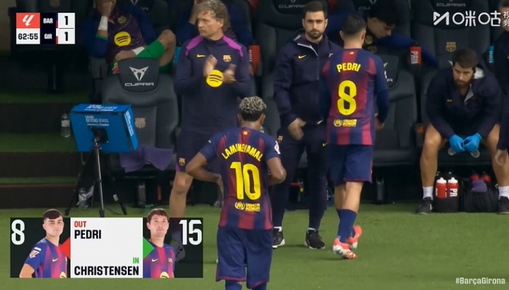 赛事 第63分钟,亚马尔、佩德里被巴德吉和克里斯滕森换下。