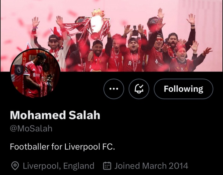 萨拉赫最新社媒截图:简介中的“利物浦球员”删除,英超直播_英超直播免费高清直播_英超直播在线高清(无插件)-24直播网背景图也一并删除