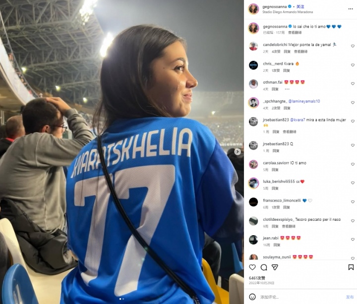 在格鲁吉亚球星科瓦拉茨赫利亚上赛季冬窗转会巴黎前,英超直播_英超直播免费高清直播_英超直播在线高清(无插件)-24直播网Anna还曾在社媒晒出自己身穿K77的球衣现场观看那不勒斯比赛的照片,并配文道:“你知道我爱你”。