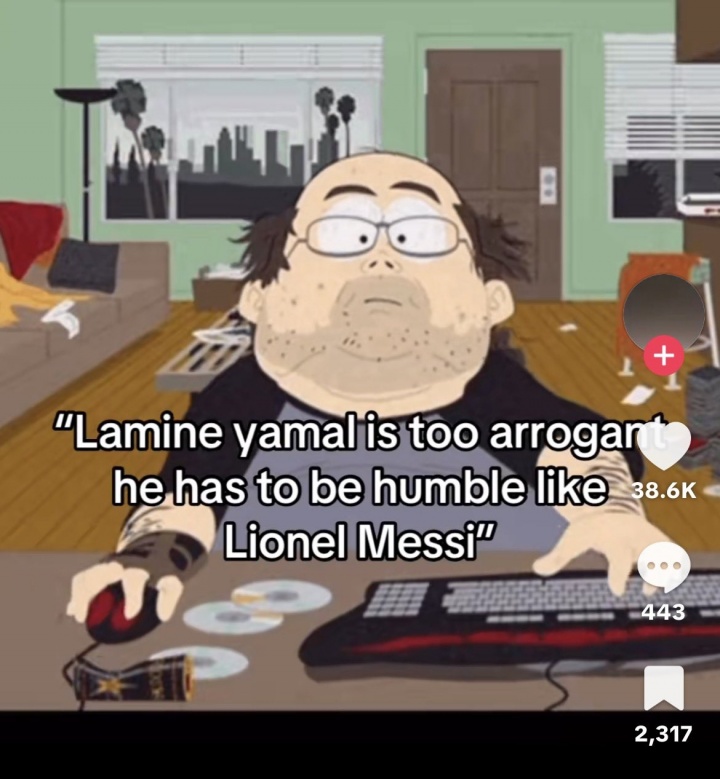 10月02日讯 亚马尔近期点赞了一个TikTok视频,该视频评价亚马尔:“拉明·亚马尔太傲慢了,英超直播_英超直播免费高清直播_英超直播在线高清(无插件)-24直播网他需要像莱昂纳尔·梅西一样谦逊。”此视频目前已有38.6k的点赞。
