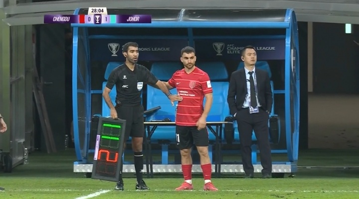 赛事 第29分钟,成都蓉城做出替换队员 调整,英超直播_英超直播免费高清直播_英超直播在线高清(无插件)-24直播网胡荷韬因伤被迫离场,古尔芬克尔后备 登场。场上比分蓉城0-1柔佛。