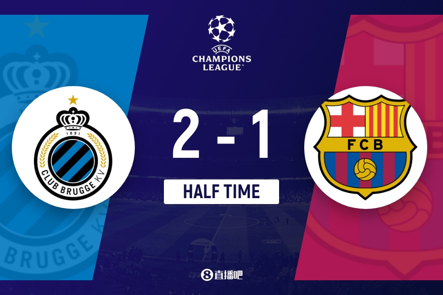 上半场加时补赛2分钟,半场结束,巴萨暂1-2布鲁日。