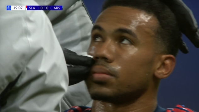 11月05日讯 欧冠阿森纳vs布拉格斯拉维亚第18分钟,加布里埃尔被击中面部,英超直播_英超直播免费高清直播_英超直播在线高清(无插件)-24直播网队医处理后继续比赛。
