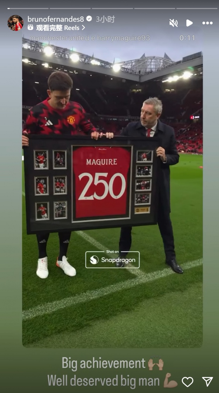 马奎尔上场比赛达成曼联生涯250场里程碑足球球员伤病更新,此役领取了纪念球衣,B费社媒晒出视频,英超直播_英超直播免费高清直播_英超直播在线高清(无插件)-24直播网配文:“重大成就,当之无愧,大个子。”
