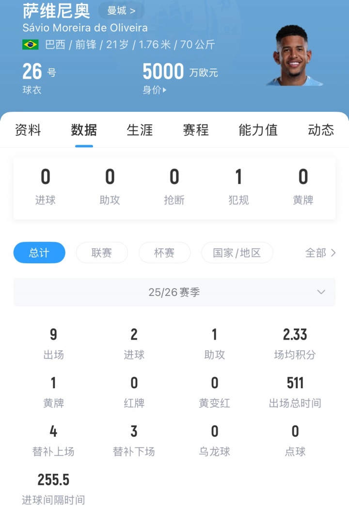 萨维尼奥现年21岁,2024年6月从赫罗纳租借回归法乙队特鲁瓦,英超直播_英超直播免费高清直播_英超直播在线高清(无插件)-24直播网同年7月以2500万转会至曼城,目前的合同期至2029年6月。本赛季他为曼城出场9次,取得2球1助。目前其德回转 价为5000万欧。
