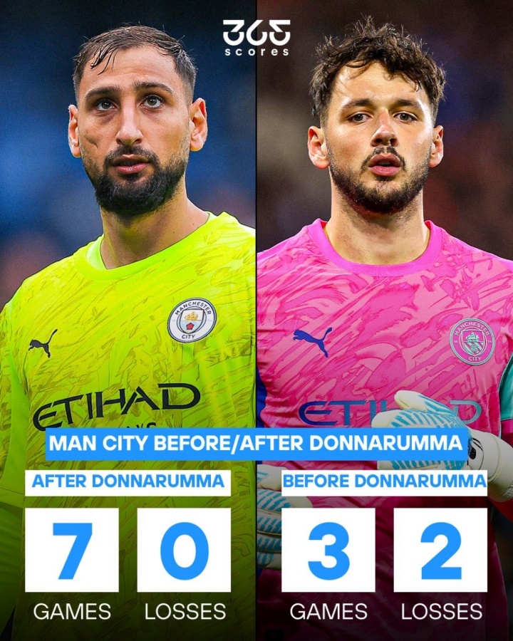 守门员多纳鲁马在其中可谓居功至伟:他加盟曼城后立即成为了球队的常规杆位,出战6场赛事 (包含4场英超、2场欧冠),贡献3场零封,此外只丢掉4球。