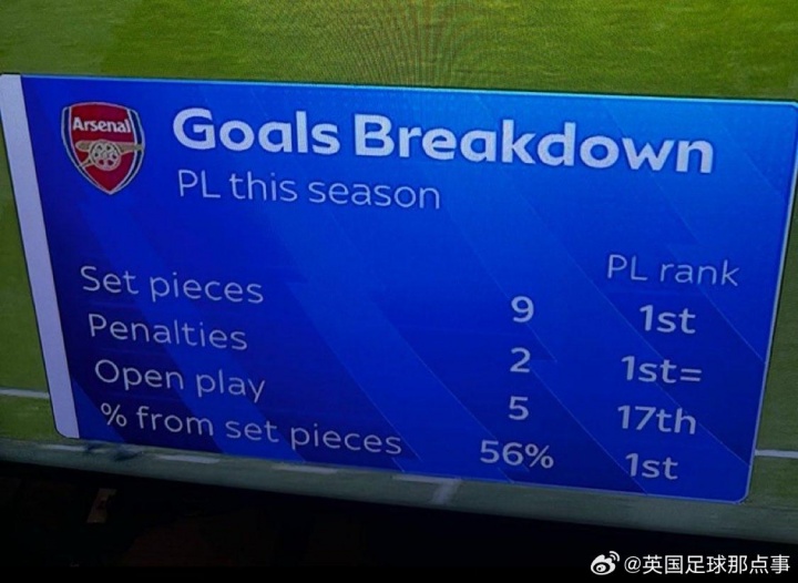 【定位球大师👑】天空体育统计阿森纳本赛季英超16个进球分布: