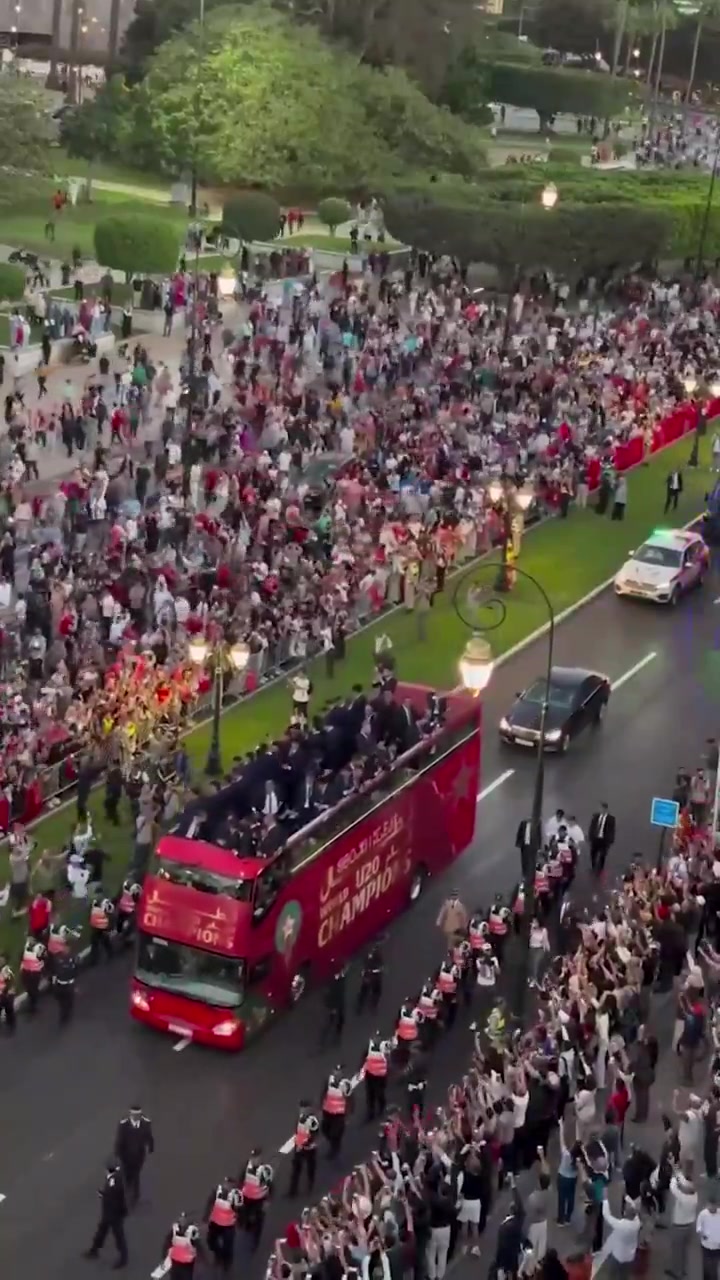 10月23日讯 在夺得U20世青赛第一名 后,摩洛哥队回国进行了夺魁 大巴巡游。